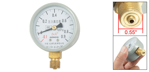 Product Name Compound Gauge Range -0.1~0.9 MPa Accuracy Class 2.5 Total Size 6 x 2.7cm/2.4'' x 1.1'' (D * H) Inlet Thread Dia 1.4cm/0.55'' External Material Metal Color As Picture Shown Net Weight 114g Package Content 1 x Compound Gauge - Reviews