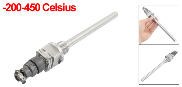 Product Name Temperature Transmitter Model WZP-269 Type PT100 Temperature Range -200-450 Celsius Degree Sensing Rod Size 150 x 12mm/ 5.9" x 0.47"(L*Dia) Installing Thread Diameter 21mm Installing Thread Size G1/2" Suitable Cable Diameter 8mm/ 0.315" Total Size 23 x 3.4cm/ 9.1" x 1.3"(L*Dia.) Main Color Silver Tone Material Metal Net Weight 209g Package Content 1 x Temperature Transmitter - Reviews