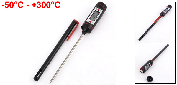 Product Name Digital Thermometer Range -50°C - +300°C / -58 °F - +572 °F Accuracy (-20°C~80°C)±1°C Resolution 0.1°C(<=100ºC), 0.5°C(>100ºC), Powered DC 1.5V Button Battery(Not Included) Battery 1 x LR44 (Not Included) Probe Size 10.5 x 0.35cm/ 4.1" x 0.14"(L*D) Total Size 18 x 2cm/ 7.1" x 0.8“(L*Max.Dia) Material Metal, Plastic Color Silver Tone, Black, White Net Weight 49g Package Content 1 x Digital Thermometer