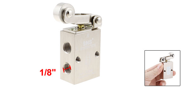 0-0.8MPa 2 Position 3 Way Roller Air Pneumatic Mechanical Valve Silver Tone