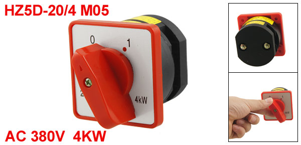 Product Name Combination Switch Model No. HZ5D-20/4 M05 Ui AC 380V, 4KW Ith AC 20A Terminal Number 4 Overall Size 6 x 6 x 7cm / 2.4" x 2.4" x 2.7" (L*W*H) Bottom Screw Dia 3.8mm / 0.15" Bottom Size 5.5 x 4.8cm / 2.1" x 1.9"(L*W)