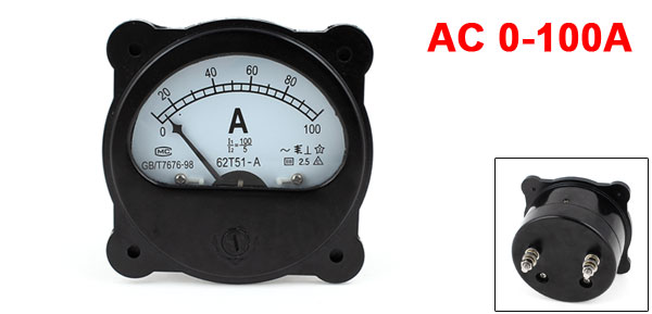 Product Name Analog Ammeter Model No. 62T51-A Measuring Current Range AC 0-100A Accuracy Class 2.5 Panel Size 8.5 x 8.3cm / 3.3" x 3.27" (L*W) Thread Dia 5mm / 0.2" Overall Depth 5cm / 2" Mount Vertical Material Plastic, Electronic Components Color Black Net Weight 176g Package Content 1 x Analog Ammeter