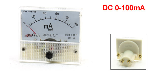 DC Current Panel Meter Model No. 85C1 Scale Range DC 0-100mA Accuracy Class 2.5 Back Screw Diameter 3mm/ 0.12" Panel Size 6.4 x 5.6 x 1.1cm/ 2.5" x 2.2" x 0.43" (L*W*T) Overall Depth 5.7cm/ 2.2" Color Clear, Beige Main Material Plastic & Metal Weight 84g Package 1 x DC Current Panel Meter - Reviews