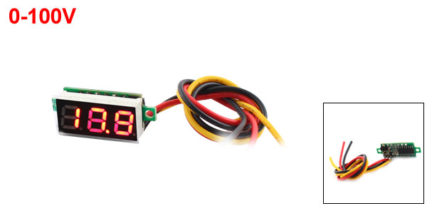 0-100V LED Display 3 Red Digit Voltage Measuring Meter Voltmeter Gauge w Cable