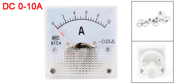 Product Name Analog Amperemeter Model 91C4 Measuring Ampere Range DC 0-10A Accuracy Class 2.5 Meter Face Size(Approx) 4.5 x 4.5 x 1cm / 1.77" x1.77" x 0.39"(L*W*T) Thread Size 2.8 x 7.4mm / 0.11" x 0.29"(D*L) Overall Depth 2.5cm / 1" Color White Net Weight 50g Package Content 1 x Analog Amperemeter