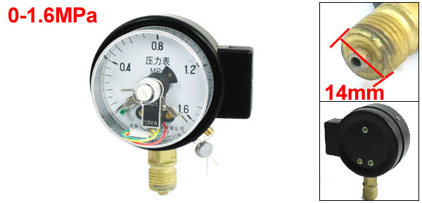 0-1.6MPa 14mm Male Thread Metal Case Pneumatic Pressure Gauge 380V 10VA