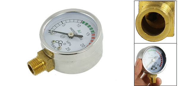 Product Name Pressure Gauge Range 0-25MPa Accuracy Class 2.5 Total Size 5.2 x 2.7cm/2'' x 1.1'' (D * H) Thread Dia 1.37cm / 0.54" External Material Metal Color Silver Tone, White Net Weight 74g Package Content 1 x Pressure Gauge Manometer - Reviews