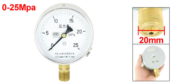 0-25MPa 20mm Male Thread Metallic Case Pneumatic Pressure Gauge