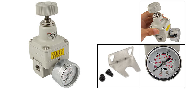 Product Name Precision Regulator Model IR2000-02 Max. Pressure 1.0kgf/cm2 Outout Pressure 0.005-0.2MPa Caliber 11mm/ 0.43" Gauge Range 0~0.25 MPa, 0~2.5Kgf/cm² Guage Size 42mm/ 1.6" Regulator Size 5 x 5 x 12.5cm/ 2" x 2" x 4.9" (L*W*H) Bracket Size 5 x 4 x 2.3cm/ 2" x 1.6" x 0.9" (L*W*H) External Material Metal, Plastic Color As Picture Shown Total Weight 397g Package Content 1 x Precision Regulator