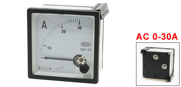 Model No. DH-72 Scale Range AC 0-30A Accuracy Class 1.5 Back Screw Diameter 4.7mm/ 0.185", 2.4mm/ 0.094" Panel Size 72 x 72 x 50mm/ 2.83" x 2.83" x 2" (L*W*H) Overall Depth 55mm/2.2" Color As Picture Shown Main Material Plastic, Metal Net Weight 109g Package 1 x AC Ammeter