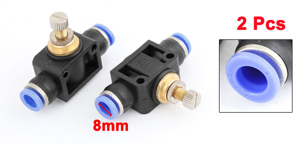 Product Name Pneumatic Speed Controller Connector Type 8mm to 8mm ( T-shaped) Total Size(Approx) 60 x 45 x 19mm/ 2.4" x 1.8" x 0.7" (L*W*T) External Material Plastic, Metal Color Black, Blue Weight 75g Package Content 2 x Pneumatic Speed Controller - Reviews