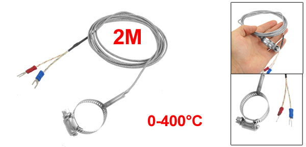 0-400 Celsius 2M Temperature Sensor K Type Thermocouple + 1.1" Clamp Hoop