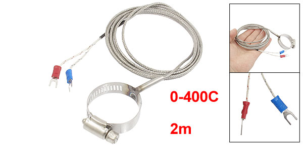 0-400 Celsius 2M Temperature Sensor K Type Thermocouple + 1.5" Clamp Hoop