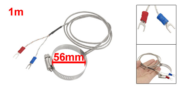 Product Name Thermocouple w Hoop Model WRNT-01 Type K Type Temperature Range 0-400C Hoop Ring Diameter 56mm / 2.2" Fork Terminal Spacing 4mm / 0.16" Fork Terminal Size 1 x 0.6cm / 0.4" x 0.2"(L*W) Cable Length 1m / 3.3ft External Shielding Metal Shield Color Silver Tone Net Weight 35g Package Content 1 x Thermocouple w Hoop - Reviews