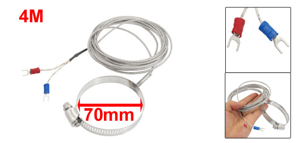 0-400C 4M Cable 70mm Hoop Ring Thermocouple Temperature Sensor w 2 Fork Terminal