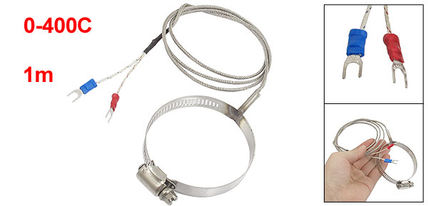 0-400C K Type Temperature Sensors Thermocouple 1 Meter w 2.7" Clamp Hoop Probe