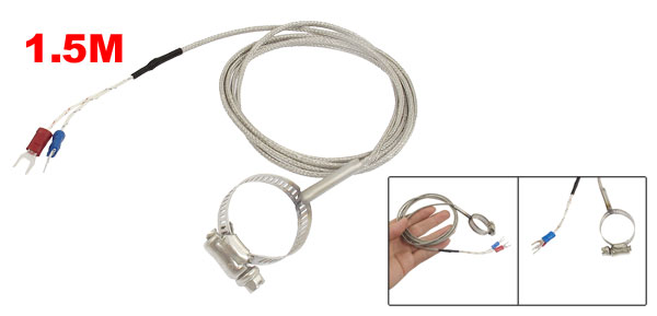 0-400C K Type Temperature Sensors Thermocouple 1.5M w 1.2" Clamp Hoop Probe