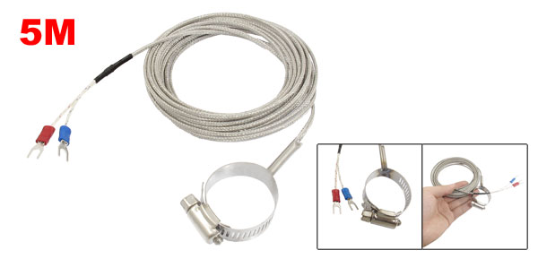0-400C K Type Temperature Sensors Thermocouple 5 Meter w 1.4" Clamp Hoop Probe