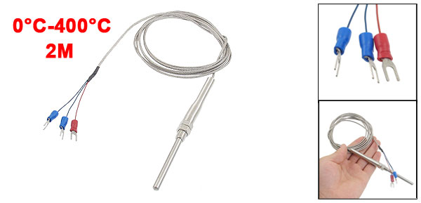 0-400C PT100 Type 5mm x 50mm Temperature Controller Thermocouple Probe 2 Meters