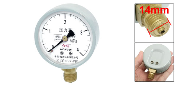 Product Name Pressure Gauge Range 0-4MPa Accuracy Class Class 2.5 Total Size 81 x 60 x 29mm/ 3.2" x 2.4" x 1.1" ((L*D*T) Thread Diameter 3/8" NPT(14mm) External Material Metal Color As Picture Shown Net Weight 119g Package Content 1 x Pressure Gauge - Reviews