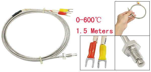 Product Name Thermocouple Type E Type, Screw Type Temperature Range 0-600C Thread Diameter 6mm / 0.24" Fork Terminal Spacing 4mm / 0.16" Probe Length 26mm/ 1.02" Cable Length 1.5M/ 59" Color Silver Tone, White Net Weight 24g Package Content 1 x Screw Thermocouple - Reviews