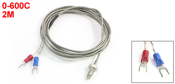 Product Name Thermocouple Transfer Type K Temperature 0-600C Thread Diameter 6mm / 0.24" Fork Terminal Spacing 4mm / 0.2" Probe Diameter 4.5mm/ 0.2" External Shielding Metal Braided Shield Total Length 2M / 6.5Ft Color Gray Weight 29g Package Content 1 x Thermocouple - Reviews