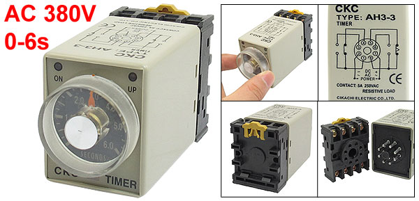 0-6s 8 Pins Plastic Housing Delay Timer Time Relay AC 380V AH3-3 w Base