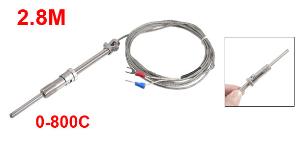0-800 Celsius Compression Spring Thermocouple Temperature Probe K Type 2.8M