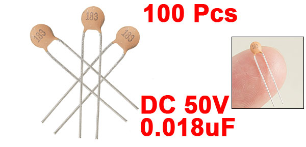 Product Name Ceramic Disc Capacitor Features Low Voltage Withstand Voltage DC 50V Capacitance 0.018uF Capacitance Tolerance ±80% / -20% Lead Pitch Spacing 3mm / 0.118" Body Dimension(Each) 3.2 x 1.5mm / 0.126" x 0.059"(D*T) Weight 6g Color As Picture Show Package Content 100(± 2%) x Ceramic Disc Capacitors - Reviews