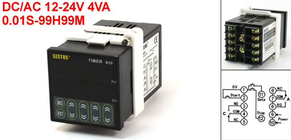 Product Name Digital Quartic Timer Relay Model B3S-2R-24 Working voltage DC/AC 12-24V 4VA Contact Output AC 250V 3A Timing Accuracy 0.1%±0.05s Control Time Range 0.01S-99H99M for A B C D Period Environment Temperature -10-55°C Relative Humidity 35-85% Dimension 47 x 47 x 90mm/ 1.8" x 1.8" x 3.5" (L*W*T) Material (External) Plastic Main Color Black Weight 372g Package Content 1 x Digital Quartic Timer Relay - Reviews