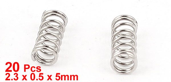 Product Name Compression Spring Material Metal Extension Spring Size 2.3 x 0.5 x 5mm/0.09" x 0.02" x 0.2"(OD*Wire Dia*L) Compression Rate 10N Weight 2g Package Content 20 x Compression Spring - Reviews