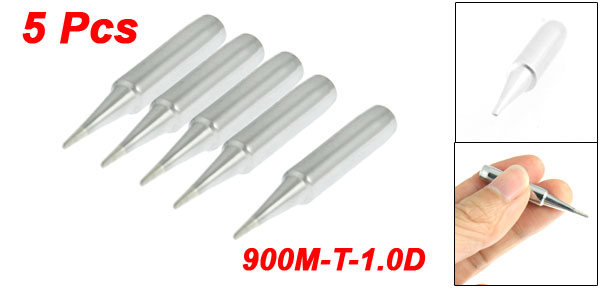 Product Name Soldering Iron Tip Model 900M-T-1.0D Material Metal Design Chisel Total Length 43mm/1.7" Shank Diameter 6.5mm Hole Dia 4mm Chisel Width 1.5mm Color Silver Tone Weight 32g Package Content 5 x Soldering Iron Tip - Reviews