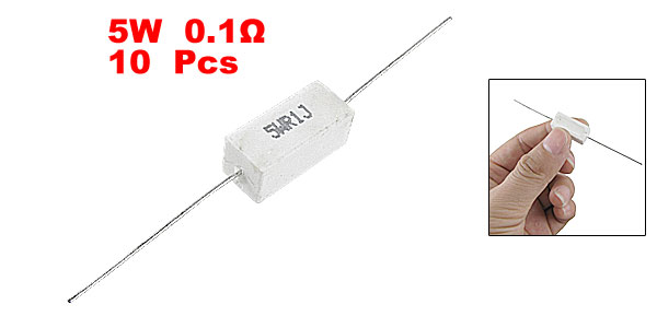 Product Name Cement Resistor Body Material Ceramic, Cement Power 5W Resistance 0.1Ω Tolerance ±5% (J) Body Size (Approx.) 22 x 9 x 9mm/0.86" x 0.35" x 0.35" (L * W * H) Lead Diameter(Approx.) 0.8mm/0.031" Color White Weight 48g Package Content 10 x Cement Resistors - Reviews