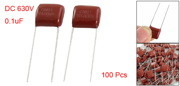 Product Name Metallized Polyester Film Capacitor Withstand Voltage DC 1000V Rated Voltage DC 630V Series CBB21 Capacitance 0.1uF Capacitance Tolerance ±5% Lead Spacing 1cm / 0.4" Lead Diameter 0.5mm / 0.02" Total Size(Exclude Lead) 1 x 1 x 0.5cm / 0.4" x 0.4" x 0.2"(L*W*T) Weight 78g Main Color As Picture Show Package Content 100 x Metallized Polyester Film Capacitor - Reviews