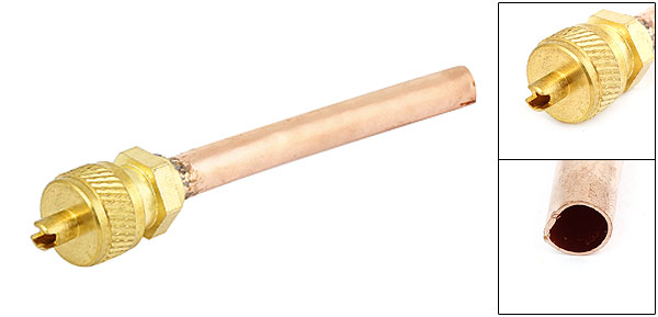 Product Name Access Valve for Air Conditioner Tube Size 5 x 65mm/ 0.2" x 2.6" (OD*L) Valve Head Dia. 4mm/ 0.16" Total Size 13 x 87mm/ 0.5" x 3.4" (D*L) Material Metal Color Gold Tone, Copper Tone Net Weight 15g Package Content 1 x Air Conditioner Access Valve - Reviews
