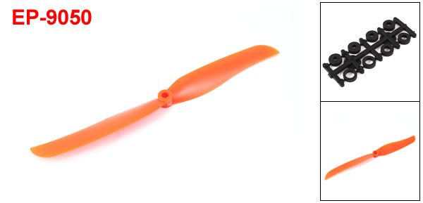 Product Name RC Airplane Propeller Blade Number 2 Model EP-9050 Motor Shaft Hole Dia 5mm / 0.2" Total Length(Rotating Diameter) 230mm / 9" Pitch 127mm /5" Max Thickness 10mm / 0.4" Material Plastic Color Orange Net Weight 11g Package Content 1x Propeller