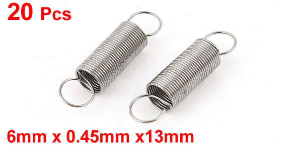 Product Name Extension Spring Material Metal Open or Closed End Loops One End Open, The Other Closed Extension Spring Size 6 x 0.45 x13mm/0.24" x 0.018" x 0.5"(OD*Wire Dia*L) Weight 20g Package Content 20 x Extension Spring - Reviews
