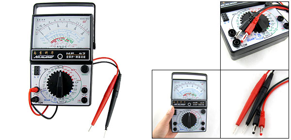 Product Name Analog Multimeter Powered By 1 x 1.5V RL7, 1 x 9V RL190(Not Included Here) DC Voltage 0.25V, 0.5V, 2.5V, 10V, 50V, 250V, 500V, 1000V AC Voltage 10V, 50V, 250V, 500V, 1000V DC Current 50uA, 0.5mA, 5mA, 50mA, 500mA, 10A Resistance 1Ω, 10Ω, 100Ω, 1KΩ, 10KΩ Main Color Black Mateiral Plastic, Electronic Parts Cable Length 60cm/23.6'' Size 19.2 x 12 x 4.8cm/7.6'' x 4.7'' x 1.9'' (L*W*T) Net Weight 350g Package Content 1 x Analog Multimeter 1 Pair x Test Probe Leads - Reviews