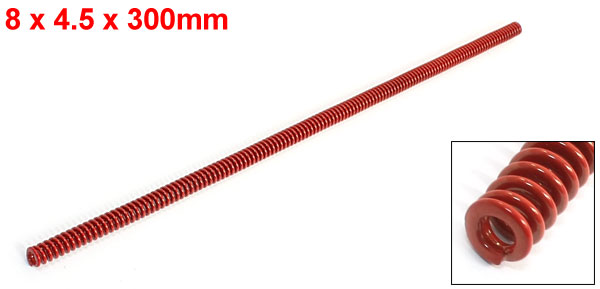 Product Name Compression Spring Type US Standard Size 8 x 4.5 x 300mm/0.315" x 0.18" x 11.8"(OD* Inner Dia * L) Materials Chromium Alloy Color Red Net Weight 37g Package Content 1 x Compression Spring - Reviews