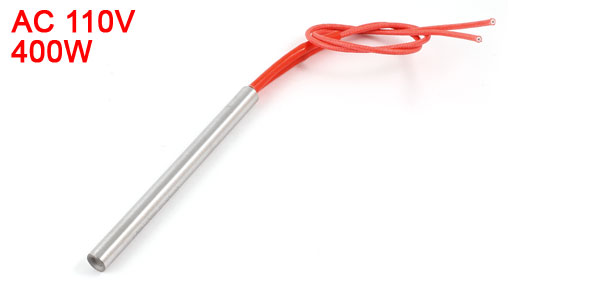 Product Name Cartridge Heater Material Stainless Steel, PVC, Nylon Rated Voltage AC 110V Power 400W Heater Size (Approx.) 8 x 100mm / 0.31" x 3.94" (D * L ) Wire Length(Approx.) 25.5cm / 10" Color Silver Tone, Red Net Weight 35g Package Content 1 x Cartridge Heater - Reviews