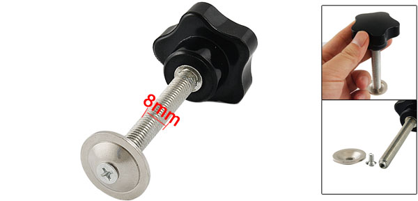 Product Name Star Knob Type Screw On Head Diameter 40mm/ 1.57" Thread Length 60mm/ 2.36" Thread Diameter 8mm/ 0.31" Total Height 92mm/ 3.6" Material Metal, Plastic Color Silver Tone, Black Weight 53g Package Content 1 x Star Knob - Reviews