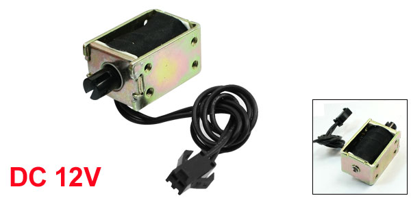 Product Name DC Solenoid Electromagnet Model 0730L-12E06 Rated Voltage DC 12V Current 2A Power 24W Type Pull Start Force & Stroke 5mm 0.35Kg End Force & Stroke 0mm 1.1Kg Total Size 3.8 x 2 x 1.5cm/1.5" x 0.78" x 0.59"(L*W*T) Hole Diameter 2mm/0.078" Cable Length 19cm /7.5" Material Metal, Electronic Parts Weight 52g Package Content 1 x DC Solenoid Electromagnet - Reviews