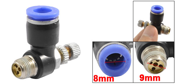 Product Name Speed Control Fitting Material Plastic, Metal Thread Diameter 9mm/ 0.35'' Inner Diameter (Blue End) 8mm/ 0.31'' Each Total Size 37 x 31 x 15mm/ 1.4'' x 1.2'' x 0.6'' (L*W*T) Color Black, Blue Weight 15g Package Content 1 x Speed Control Fitting - Reviews
