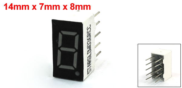 Product Name LED Digital Display Digital Display 0.36" One Digit Emitted Color Red Pin Number 10 Pin Pitch 2mm/0.08" Size(Not Include Pin) 14 x 7 x 8mm/ 0.55" x 0.28" x 0.31" (L*W*H) Material Plastic, Metal Color Black, White Weight 2g Package Content 1 x LED Digital Display - Reviews
