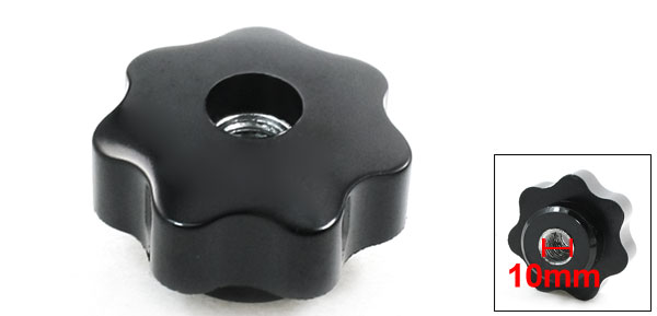 Product Name Star Knob Type Screw On Head Diameter 38mm / 1.5" Thread Hole Diameter 10mm/ 0.39" Total Height 25mm/ 0.98" Material Metal ,Plastic Color Silver Tone,Black Weight 31g Package Content 1 x Star Knob - Reviews