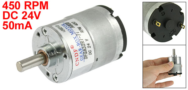 Product Name Gear Motor Rated Voltage DC 24V Rated Current 50mA Rated Torque 0.3Kg.cm Rated Speed 450 RPM Shaft Size 15 x 6mm/0.6" x 0.24" (L*D) Motor Body Length 41mm/1.6" Motor Body Diameter 33mm/1.3" Thread Diameter 2.5mm/0.1" Total Length(Included Pin) 68mm/2.7" Material Metal, Electronic Parts Color Silver Tone Weight 109g Package Content 1 x Gear Motor - Reviews