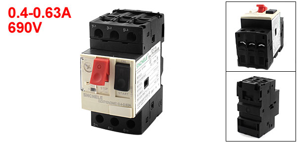 0.4-0.63A 690V 6KV ON/OFF Button Black Starting NO+NC Motor Circuit Breaker