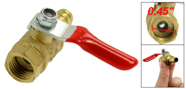 Product Name Ball Valve Thread Inner Diameter 11.4mm/ 0.45" Ball Hole Diameter 6mm/ 0.24" Hose Tail OD 9mm/ 0.35" Hose Tail Inside Diameter 6.5mm / 0.25" Level Handle Size 48 x 11mm/ 1.9" x 0.43" (L*W) Overall Size 60 x 16 x 30mm/ 2.2" x 0.63" x 1.2" (L*W*H) Color Gold Tone & Siver Tone Material Brass & Metal, Plastic Weight 38g Package 1 x Brass Ball Valve - Reviews