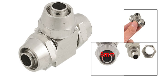 Product Name Quick Coupler Type Tee Shape, 3 Ways Fit Tube 8 x 12mm/ 0.31" x 0.47" (Inner Dia.*Outer Dia.) Overall Size 45 x 31 x 15mm/ 1.8" x 1.2" x 0.6" (L*W*T) Color Silver Tone Material Chrome Plated Solid Brass Weight 78g Package Content 1 x Quick Coupler - Reviews
