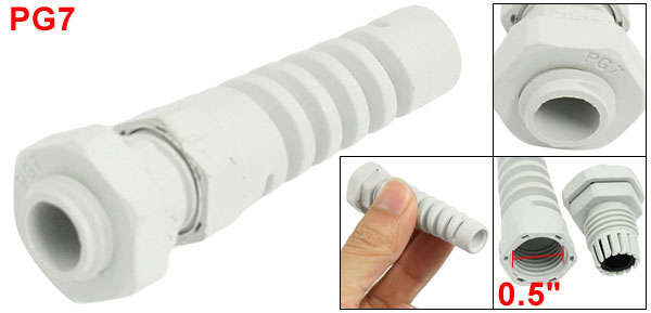 Product Name Cable Gland Model PG7 Degree of Protection IP67 (Water Proof) Cable Range 2-5mm / 0.08"- 0.2" Thread Diameter 12.5mm / 0.5“ Thread Length 5mm / 0.2” Total Size 62 x 8.5 x 7.3mm / 2." x 0.6" x 0.5" (L*D*D) Material Plastic Color White Weight 24g Package Content 1 x Cable Gland - Reviews